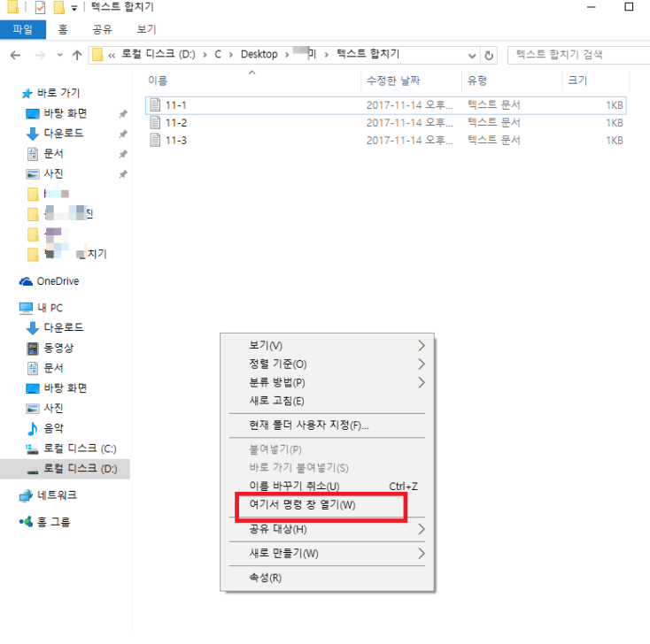 CMD๋ก ํ ์คํธํ์ผ ํฉ์น๊ธฐ ๋ฐฉ๋ฒ