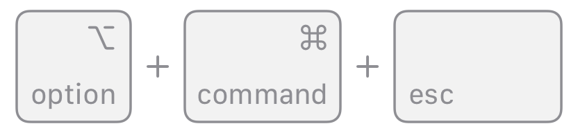 option(๋๋ alt), command, esc(escape) ํค๋ฅผ ๋์์ ๋๋ฆ ๋๋ค.1 ๋๋ ํ๋ฉด ๋ชจ์๋ฆฌ์ ์๋ Apple ๋ฉ๋ด(๏ฃฟ)์์ '๊ฐ์ ์ข ๋ฃ'๋ฅผ ์ ํํฉ๋๋ค.