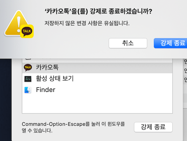 ๋งฅ๋ถ ํ๋ก์ธ์ค ๊ฐ์ ์ข ๋ฃ ๋ฐฉ๋ฒ 2